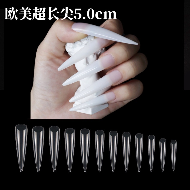 街遇跨境美甲超长水管甲片假指甲贴片磨砂全贴外贸欧美超长尖5cm