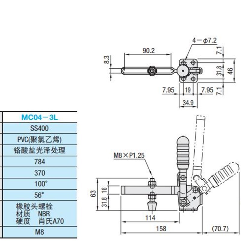 米思米MC02-1万 向 安 装 肘 夹 MC02-S1 推 拉 兼 用夹 具