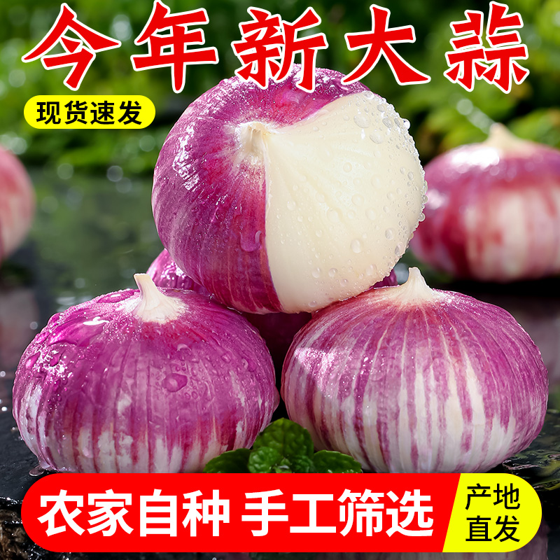 今年新干蒜农家干大蒜紫白皮大蒜头新鲜大蒜蔬菜整箱开封可腌绿蒜