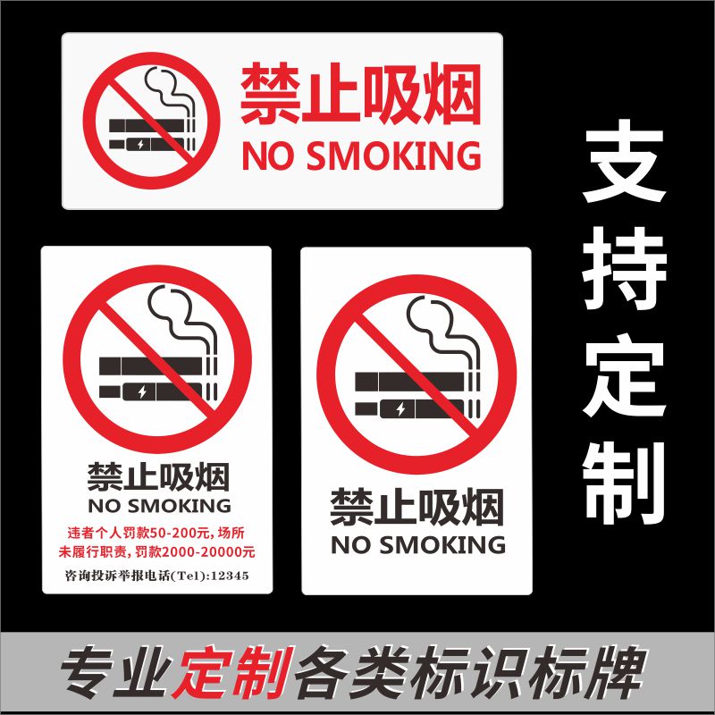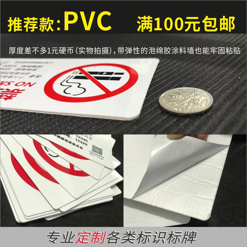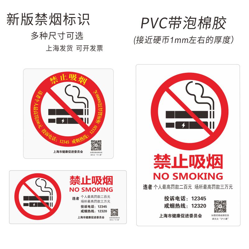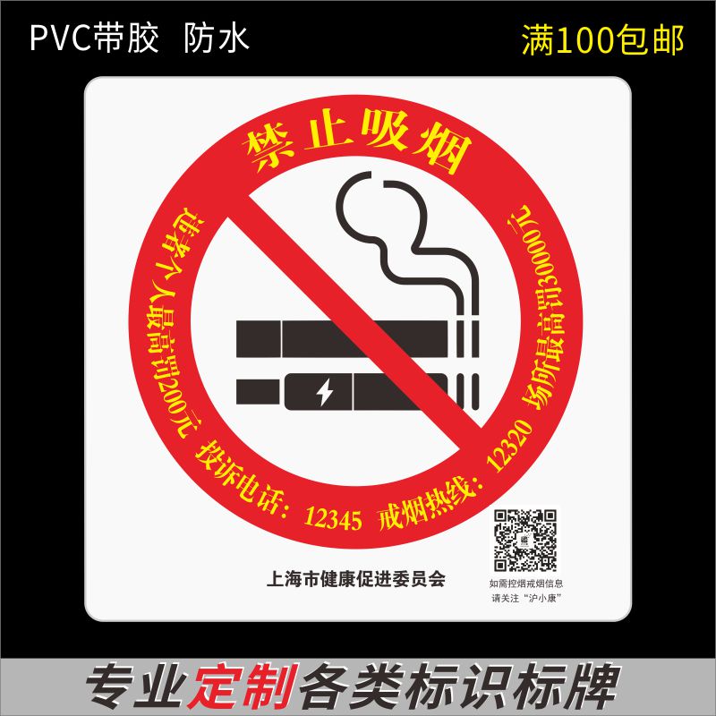 禁止吸烟提示标识牌贴上海市健康促进会有害竖版方形PVC自粘带胶