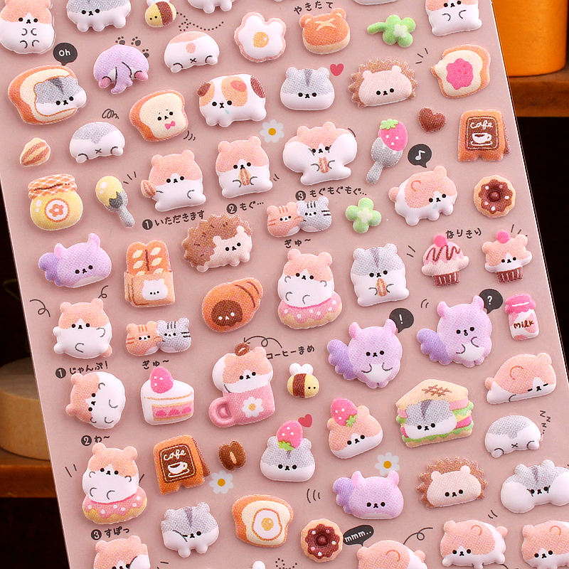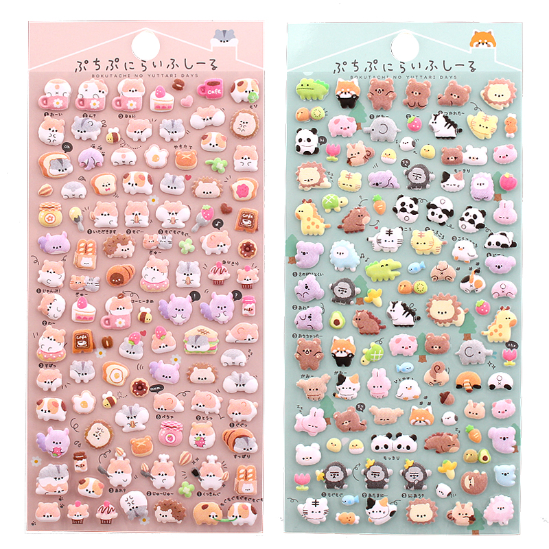 日系卡通可爱动物立体泡泡贴纸sticker小狗企鹅儿童奖励小粘贴画