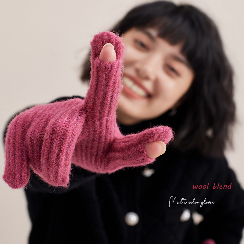 韩国㊣定纺可机洗羊毛混纺可触屏手套冬季电动车骑行针织加厚保暖