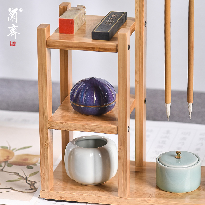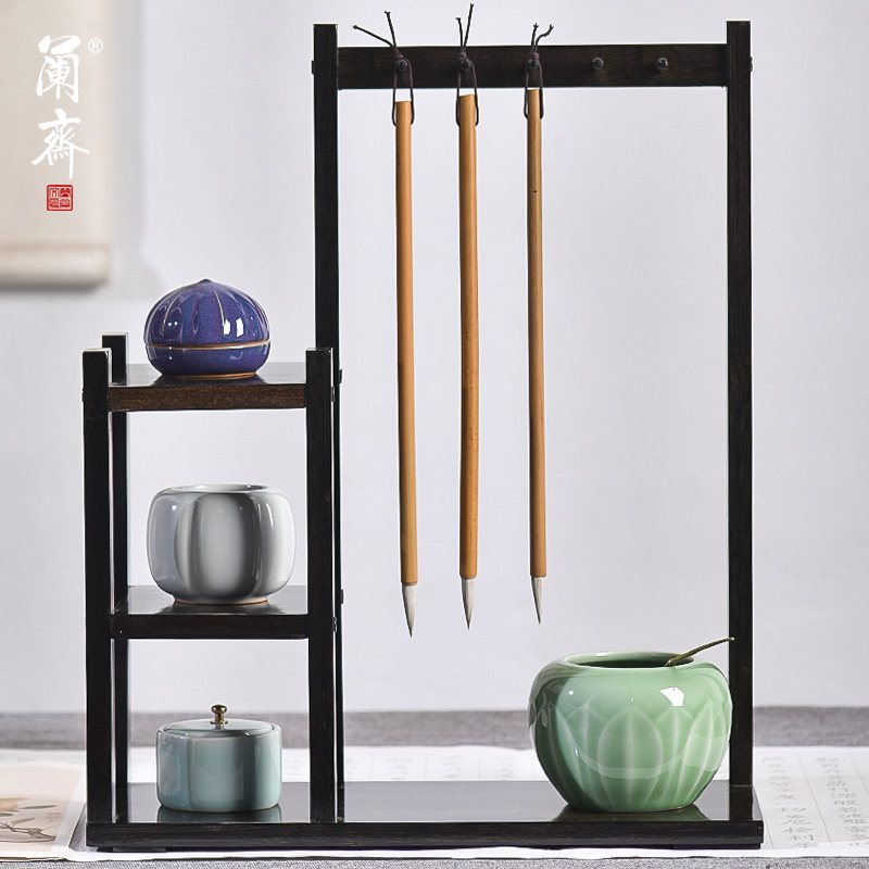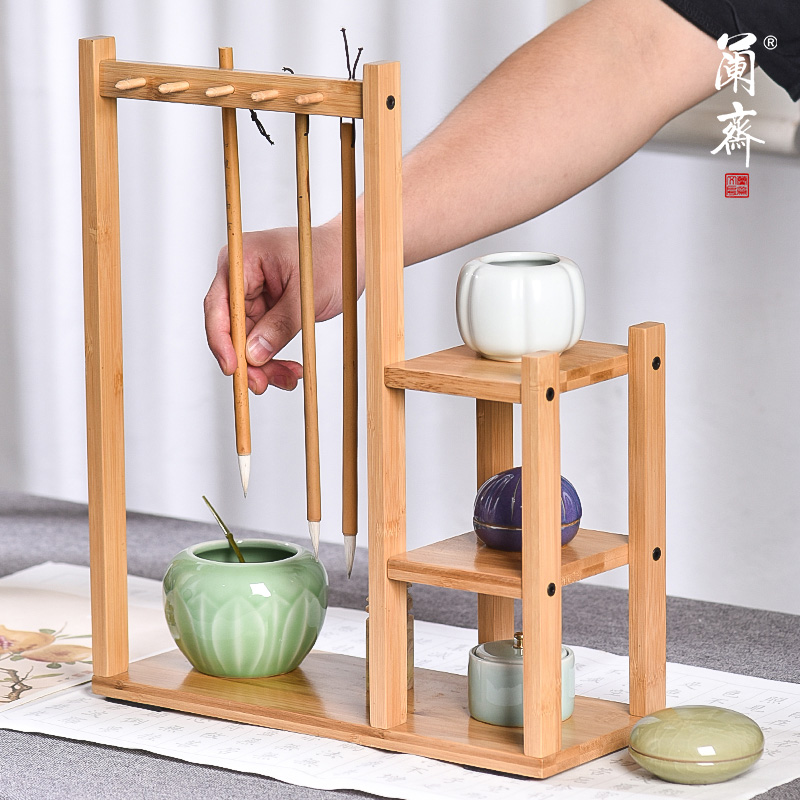 兰斋笔架毛笔架楠竹笔挂实木毛笔挂新中式多功能置物毛笔架收纳架文房四宝摆件挂毛笔的笔架托书法初学者