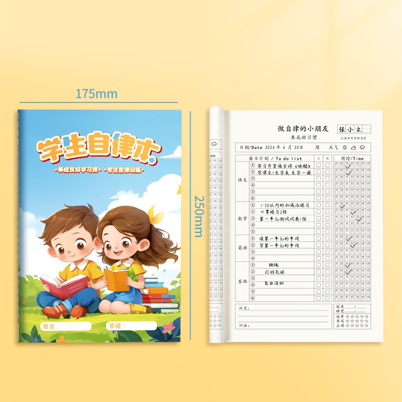 小学生作业自律本打卡本儿童学习自律计划表时间管理每日计划本好习惯自律神器记录本单词小朋友养成完成积分
