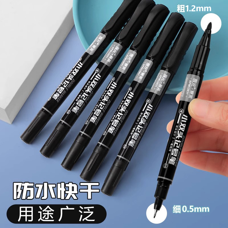 小双头记号笔勾线笔美术生专用快干防水笔油性不掉色快递用大头笔