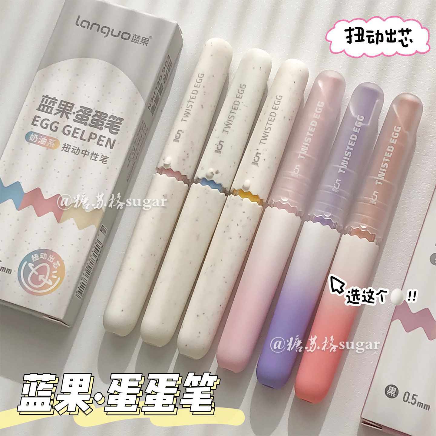 蓝果蛋蛋笔旋转出芯中性笔ins高颜值可爱学生速干顺滑CS头刷题笔
