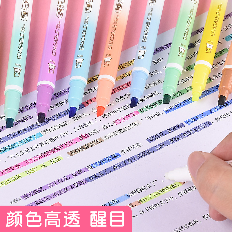 可擦荧光标记笔荧光笔学生用记号笔彩色划重点手帐账专用笔多色淡色系高颜值可以擦掉的萤笔光彩色笔做笔记用