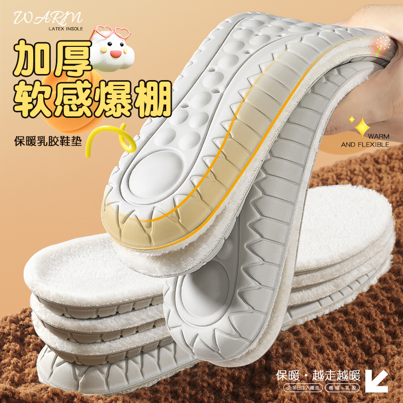 乳胶鞋垫冬季保暖男女棉超软久站防痛吸汗防臭秋冬歌圈绒加绒加厚
