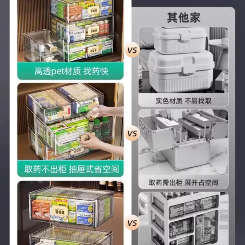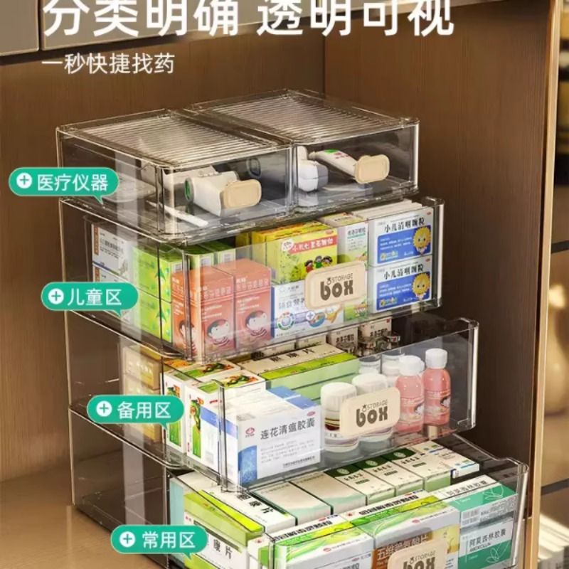 抽屉式药箱透明药物收纳盒家用药品大容量医药箱置物架家庭分装箱
