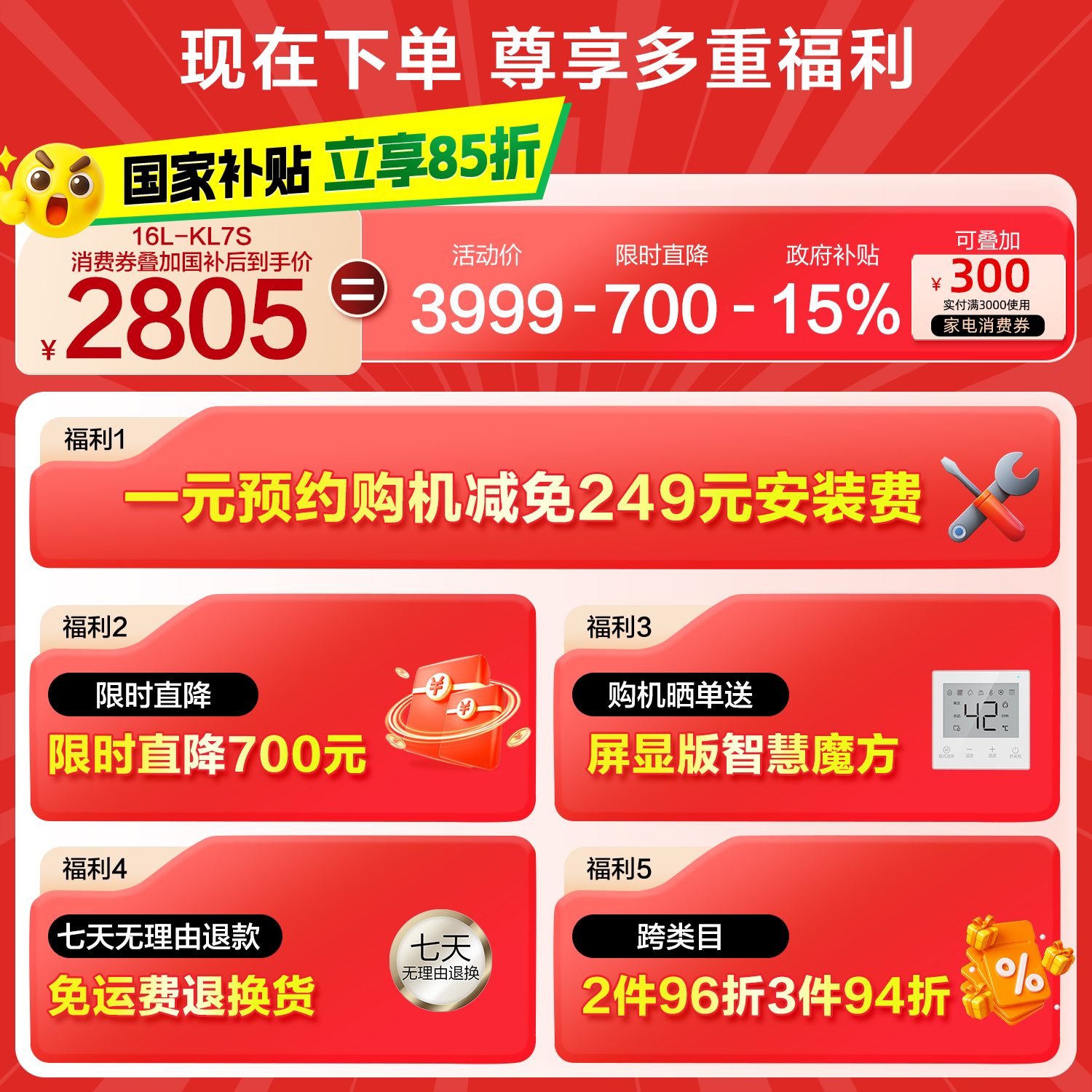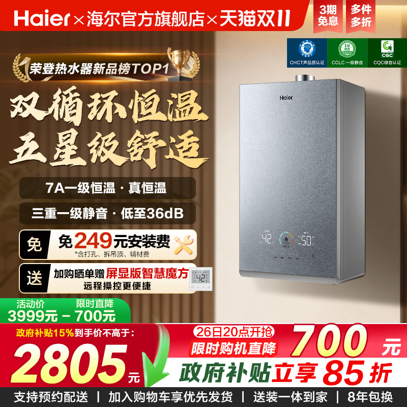 [政府换新补贴]海尔燃气热水器双循环天然气家用静音增压KL7S恒温