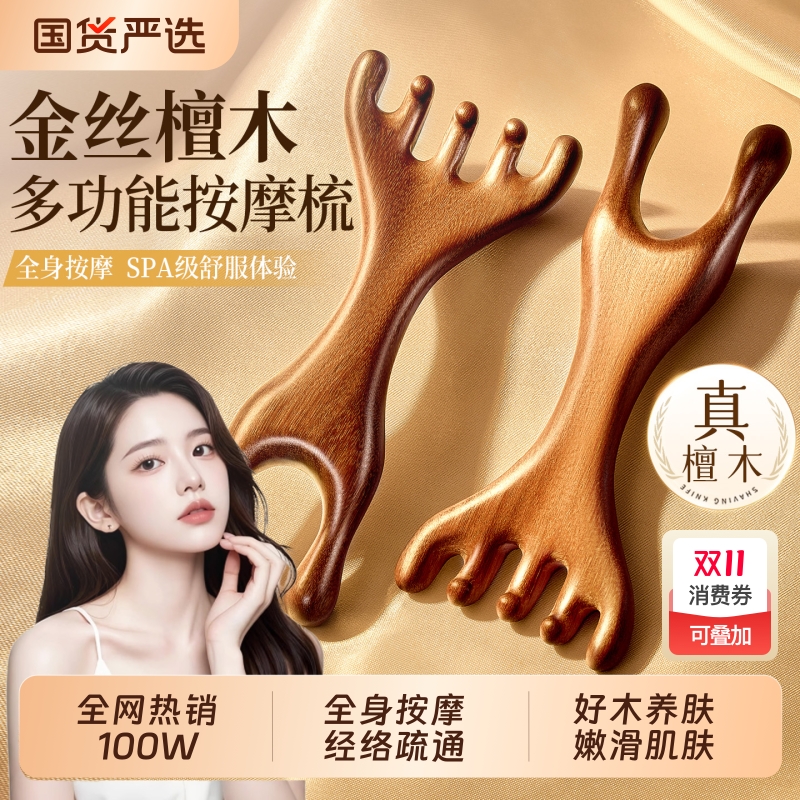 五爪鹿角按摩梳子头部头皮经络头疗养生小青蛙檀木疏通刮神器宽齿