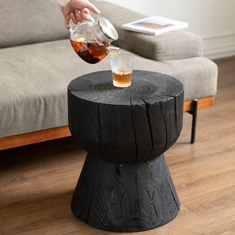 侘寂风碳黑实木沙角几121木桩桌小茶几泡茶木墩原木创意休发闲化