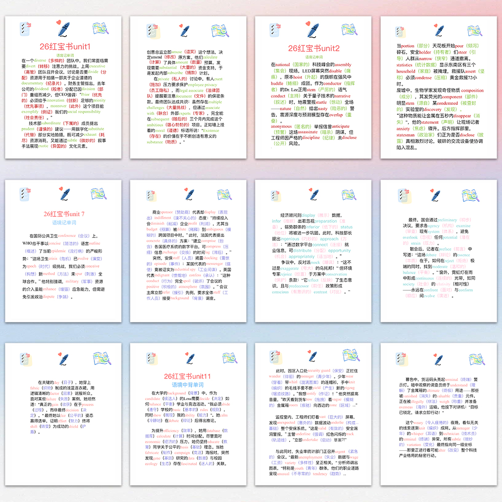 单词记忆法考研邪修红宝书趣味小说无痛记忆知识点速记笔记本贴纸