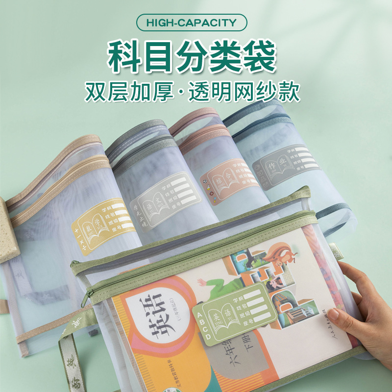 学生科目分类文件袋手提拉链式双层大容量作业试卷收纳袋开学好物