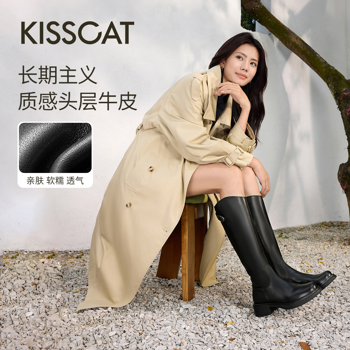 真皮~骄屿内增高长筒靴2025新款不过膝辣妹骑士靴朋克欧美裤管靴