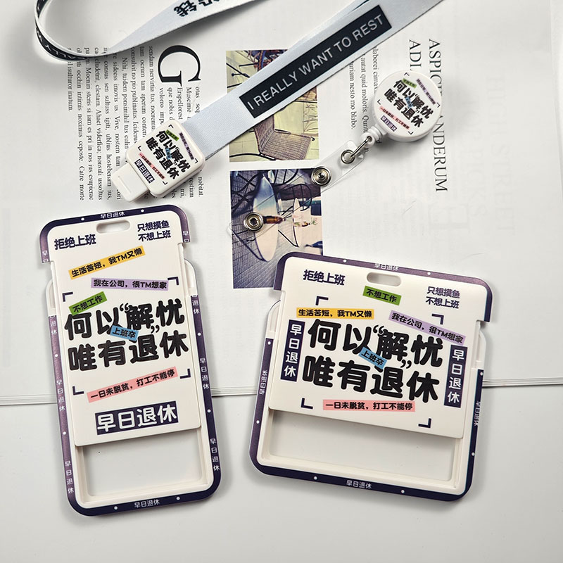 何以解忧唯有退休个性创意文字员工工作证工牌厂牌证件套挂脖伸缩身份证件胸牌胸卡易拉扣卡套饭卡公交门禁卡