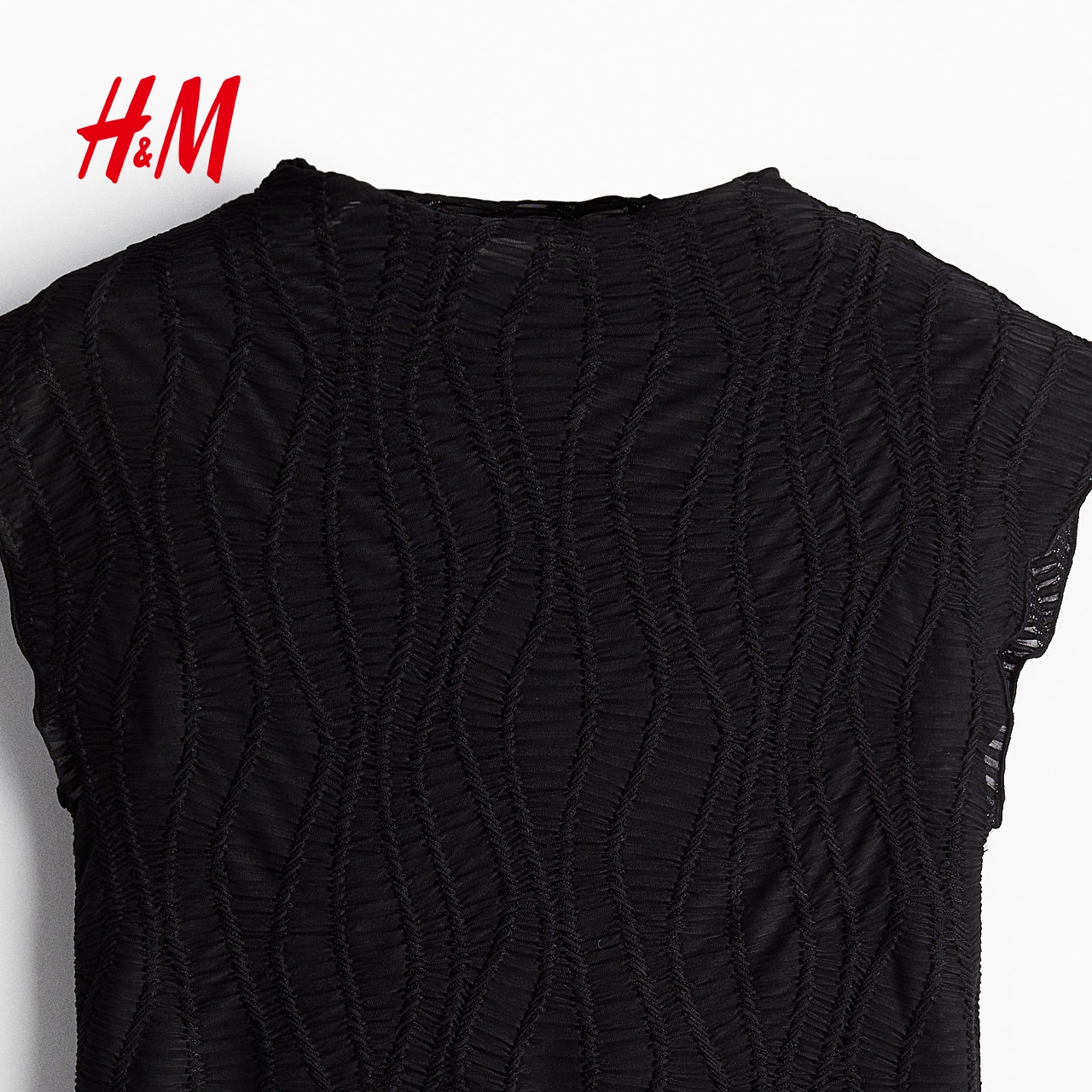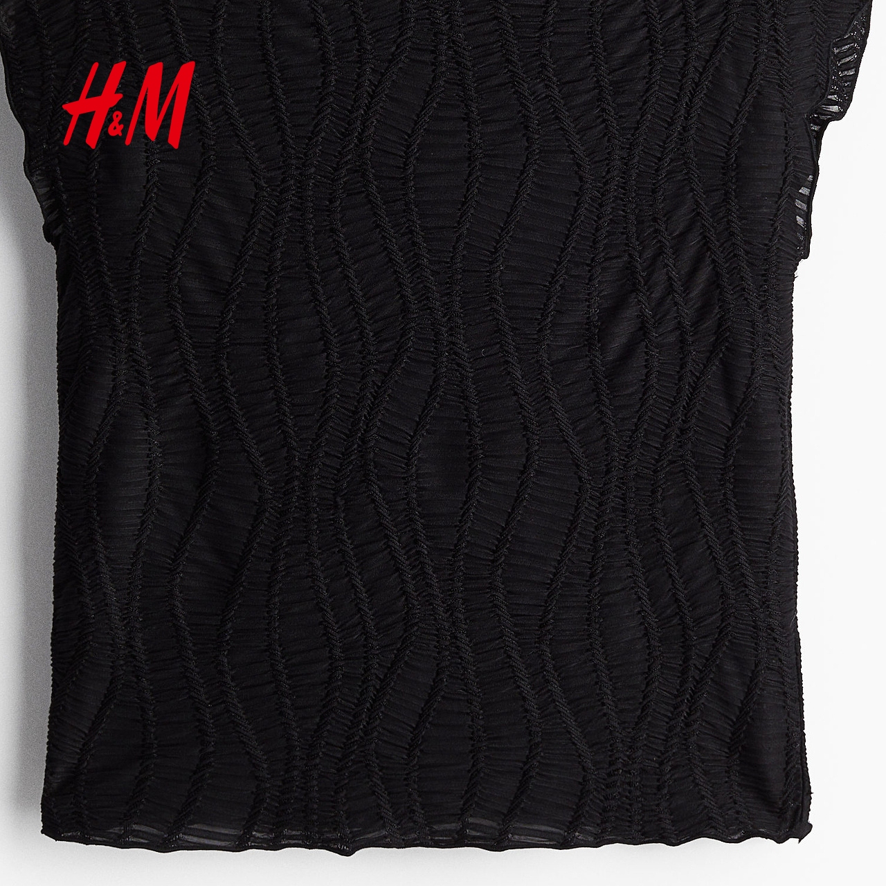 HM女装T恤秋季短袖常规款修身提花汗布小高领上衣1244947