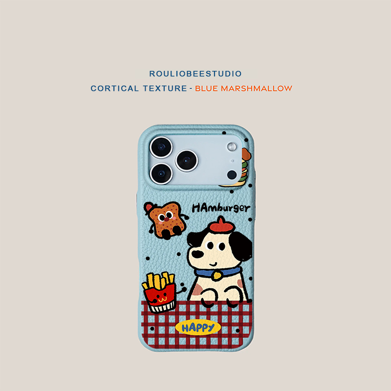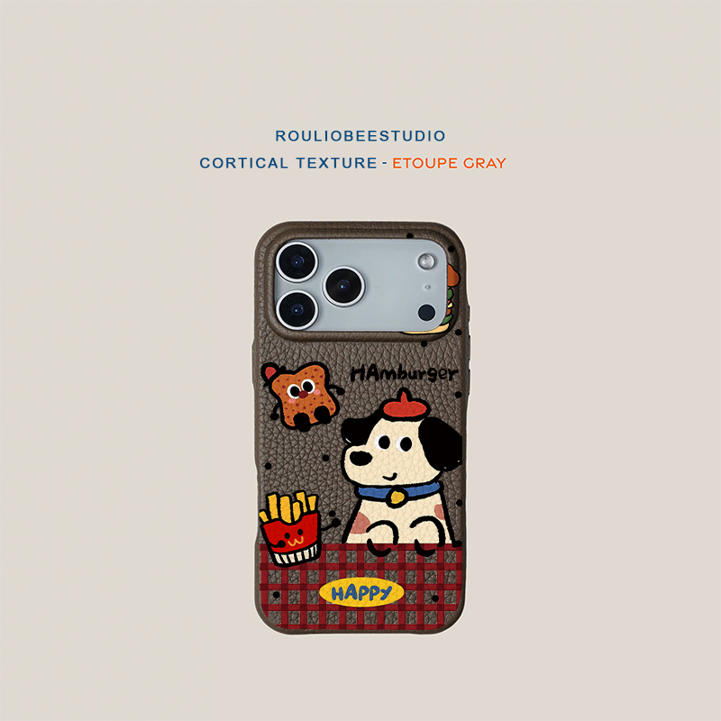 快乐小狗适用苹果17promax手机壳iphone15promax新款16promax肤感13荣耀14皮纹保护套12华为p70vivoppofindx8
