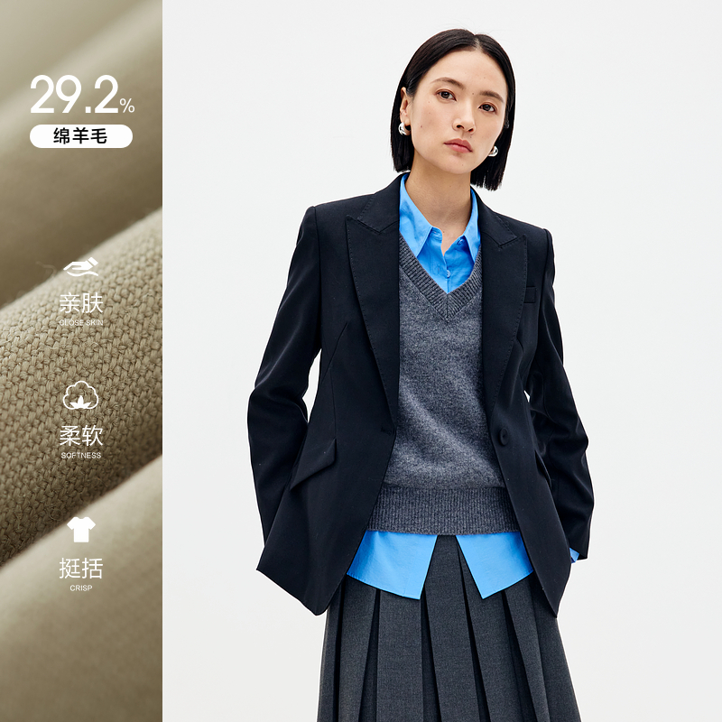 水云间戗驳领小西装外套女一粒扣通勤正肩西装知识分子风2025春款