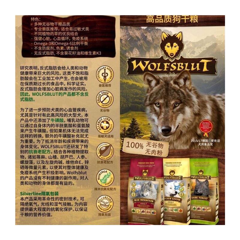 心粮德国进口Wolfsblut狼族血缘天然低温冷压低敏低脂狼血全犬狗