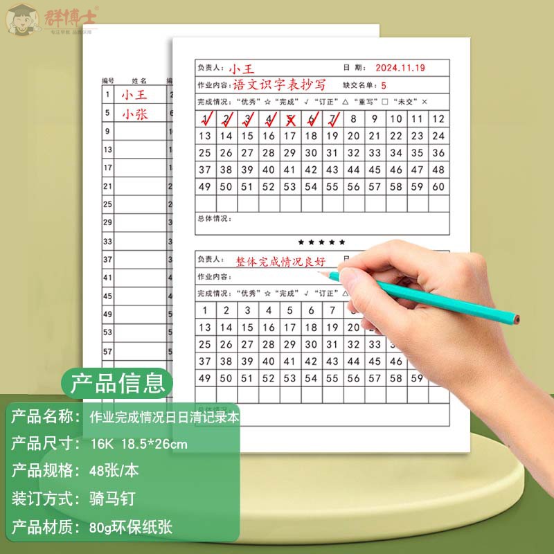 班级交作业完成情况日日清记录本适合小学生初中生语文数学英语等