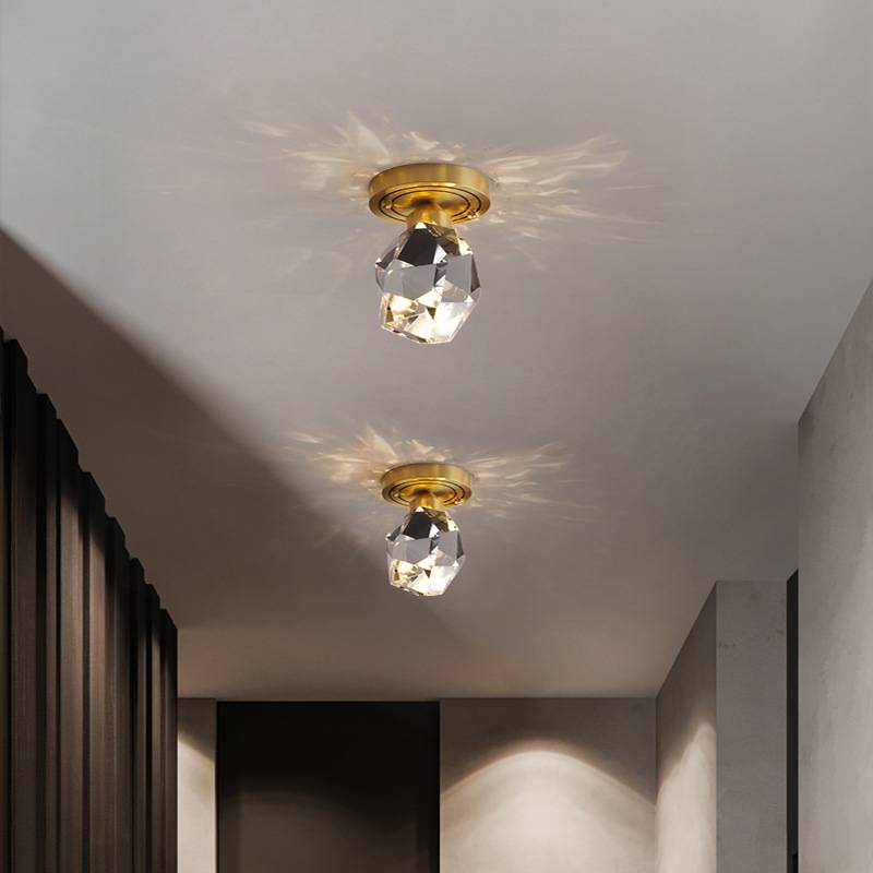 现代全铜吸顶灯入户灯简约现代走廊过道衣帽间卧室玄关阳台水晶灯