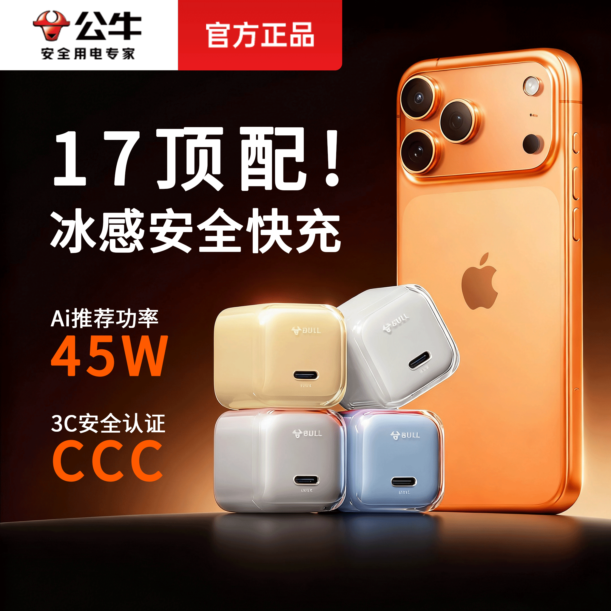 【iPhone17首选】公牛冰立方苹果充电器45w/40w/30w快充一套16promax/15充电头和数据线typec手机pd套装插头