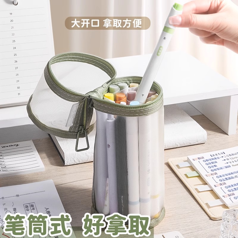网纱笔筒笔袋两用文具袋2025新款学生铅笔袋大容量收纳袋高颜值ins风透明网纱笔袋可入考场中高考专用笔袋
