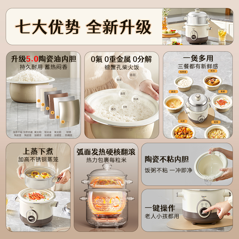 【秒杀限拍1台】olayks立时迷你电饭煲1-2-3人家用2升电饭锅蒸笼