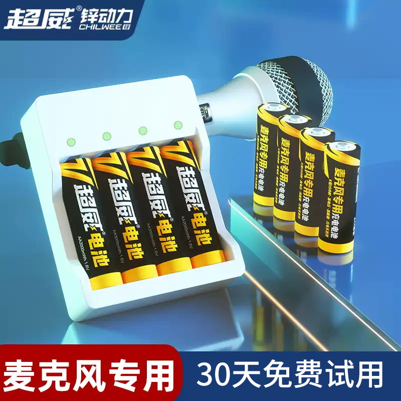 超威ktv话筒专用5号充电电池大容量镍锌1.6V强动力无线蓝牙麦克风耐用xbox手柄可锂玩具遥控汽车五号通用电池