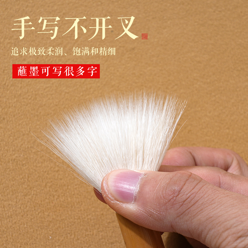 轩义堂精品纯羊毫大中小白云细光锋古法精制100%纯羊毛笔初学者书法楷书行书工笔画花鸟国画染色分染白云毛笔