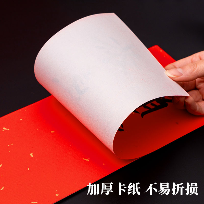 万年红挥春对联专用纸书法软卡空白手写宣纸卡纸红纸洒金自写过年四言春联纸四字珲春红色迷你小对联新年门贴