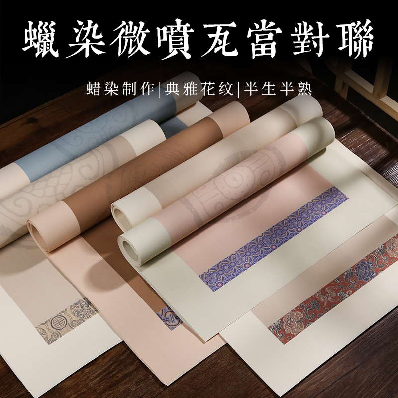 四尺对开四字五六七八言蜡染瓦当对联宣纸书法作品纸半生半熟空白自写手写高档