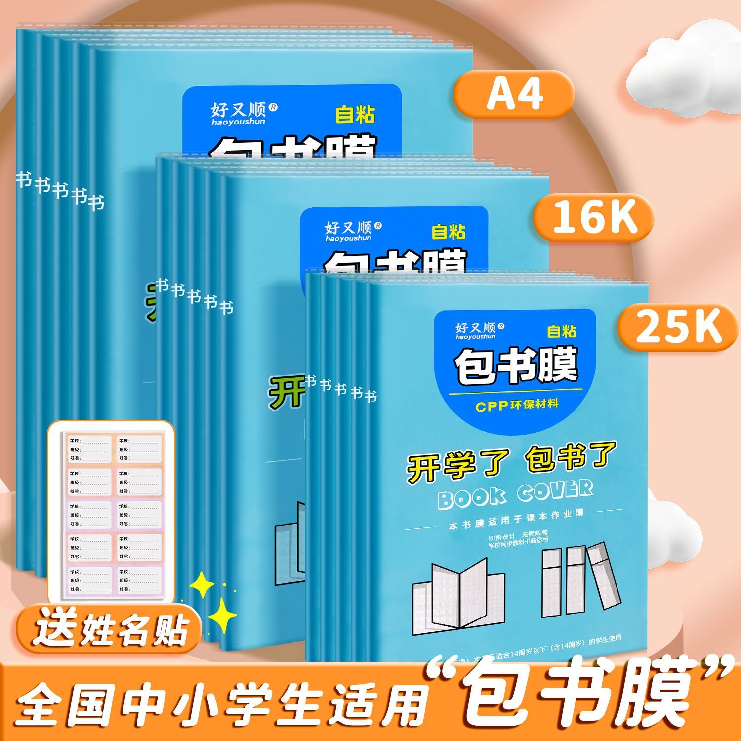 好又顺2025新款包书皮书套透明贴纸自粘小学生一二三年级上包装纸书壳书本保护套a4加厚初中生专用课本高中生