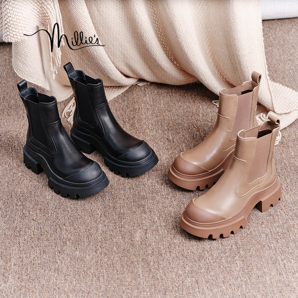 【露营之光】妙丽女鞋冬季舒适风厚底增高短靴切尔西靴女56682DZ3