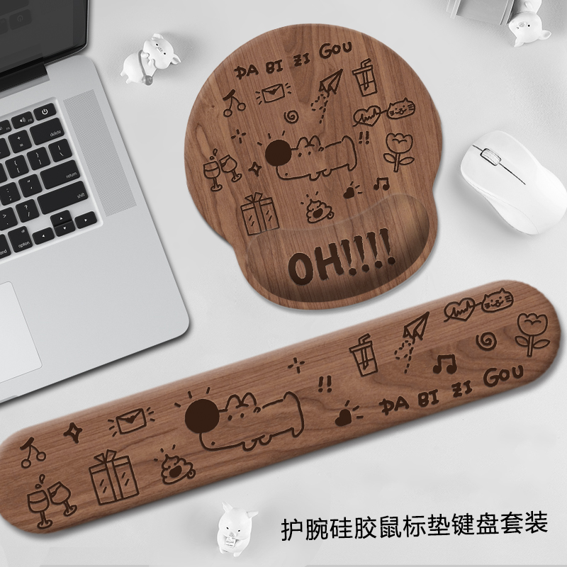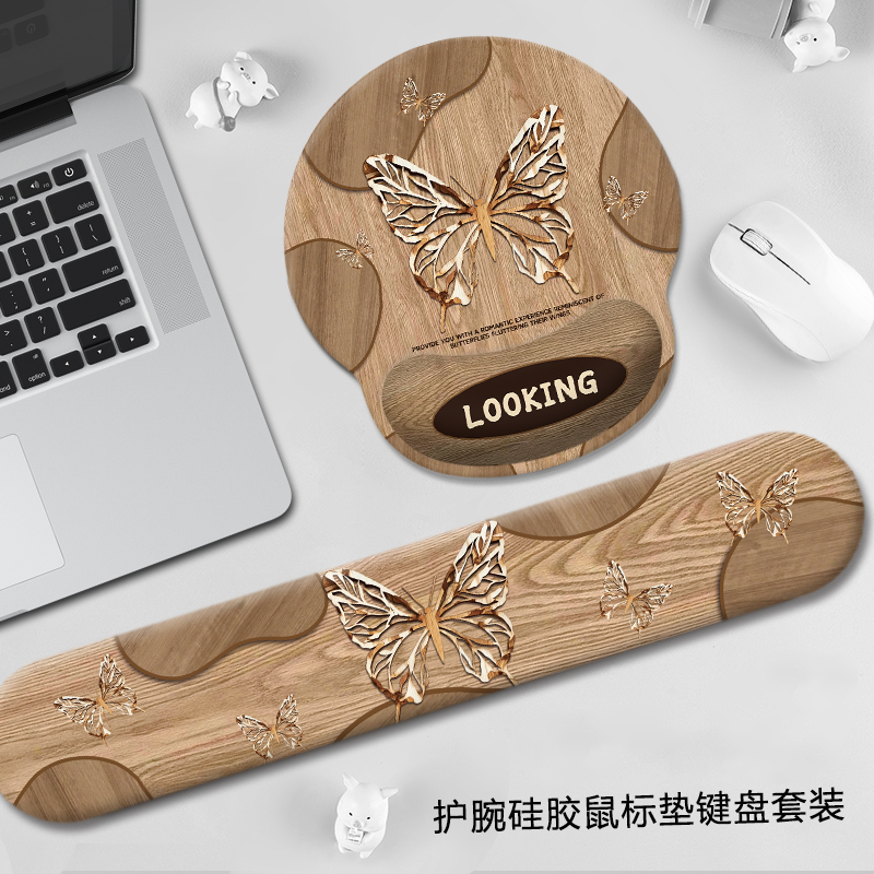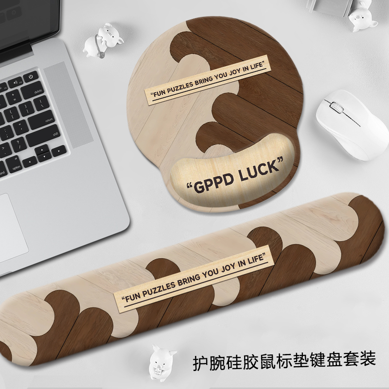 鼠标垫护腕木纹拼图高级感办公室工位电脑键盘垫护手腕鼠标腕托