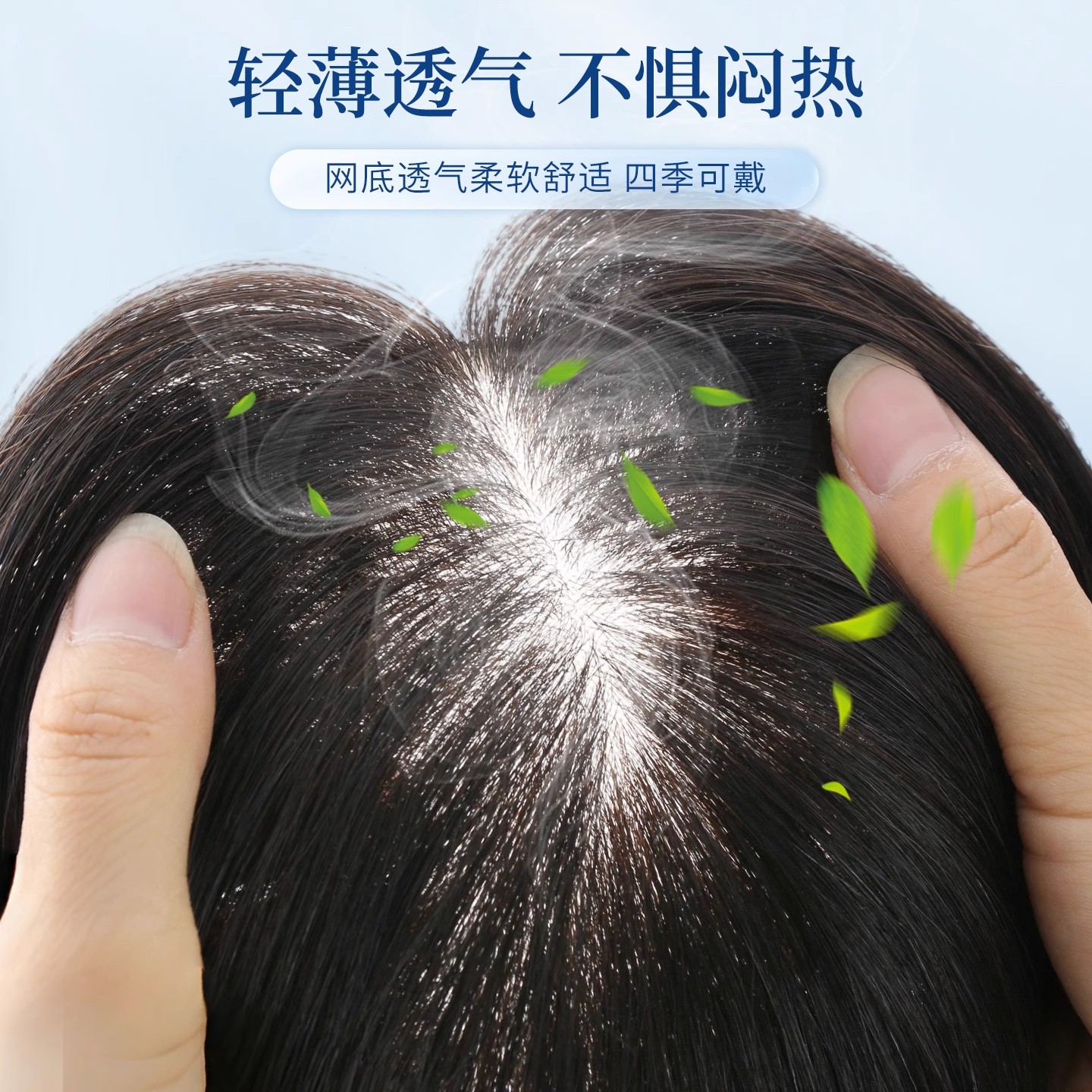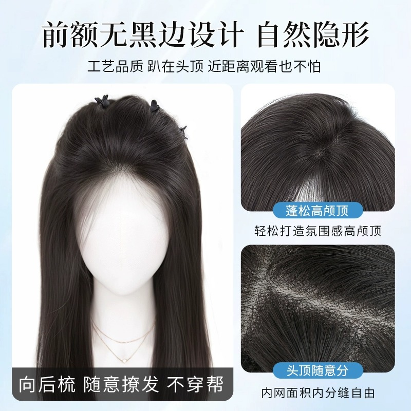假发女片头顶真发增发量蓬松高颅顶遮白发自然递针刘海补发片前额