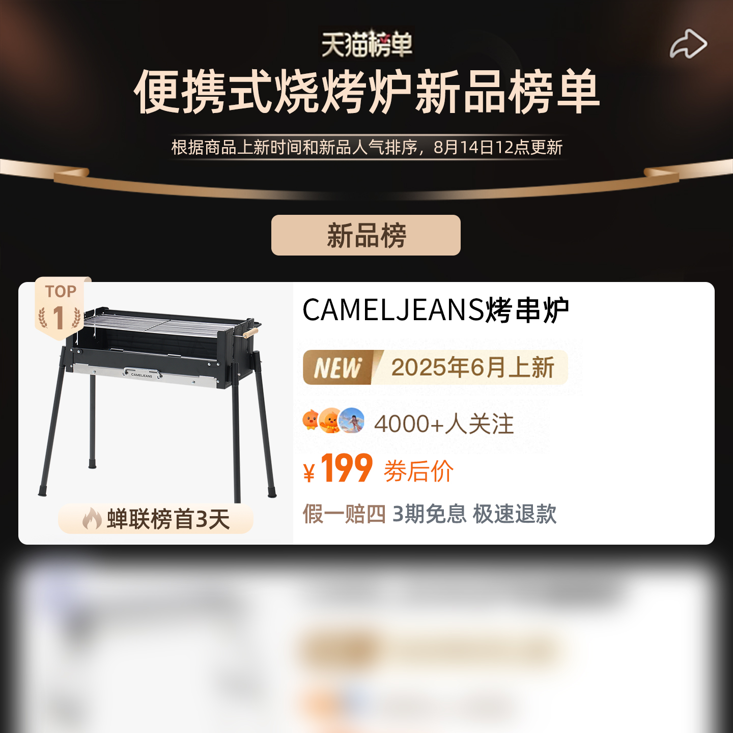 CAMELJEANS烧烤炉家用户外炉子商用烤肉烤串生蚝烤架便携2025新款