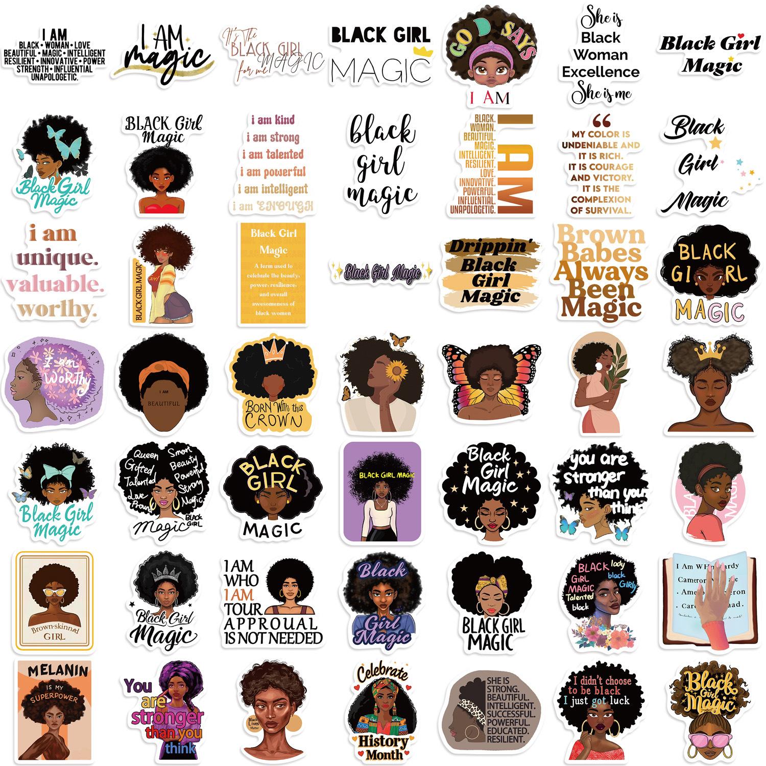 50张黑人女孩自我肯定励志贴纸笔记本行李箱保温杯装饰跨境贴画