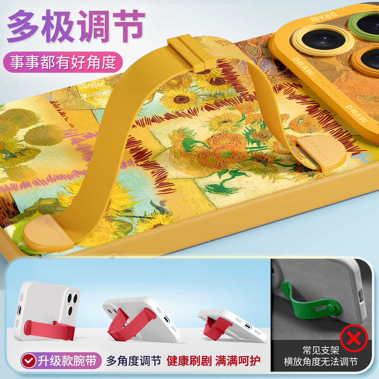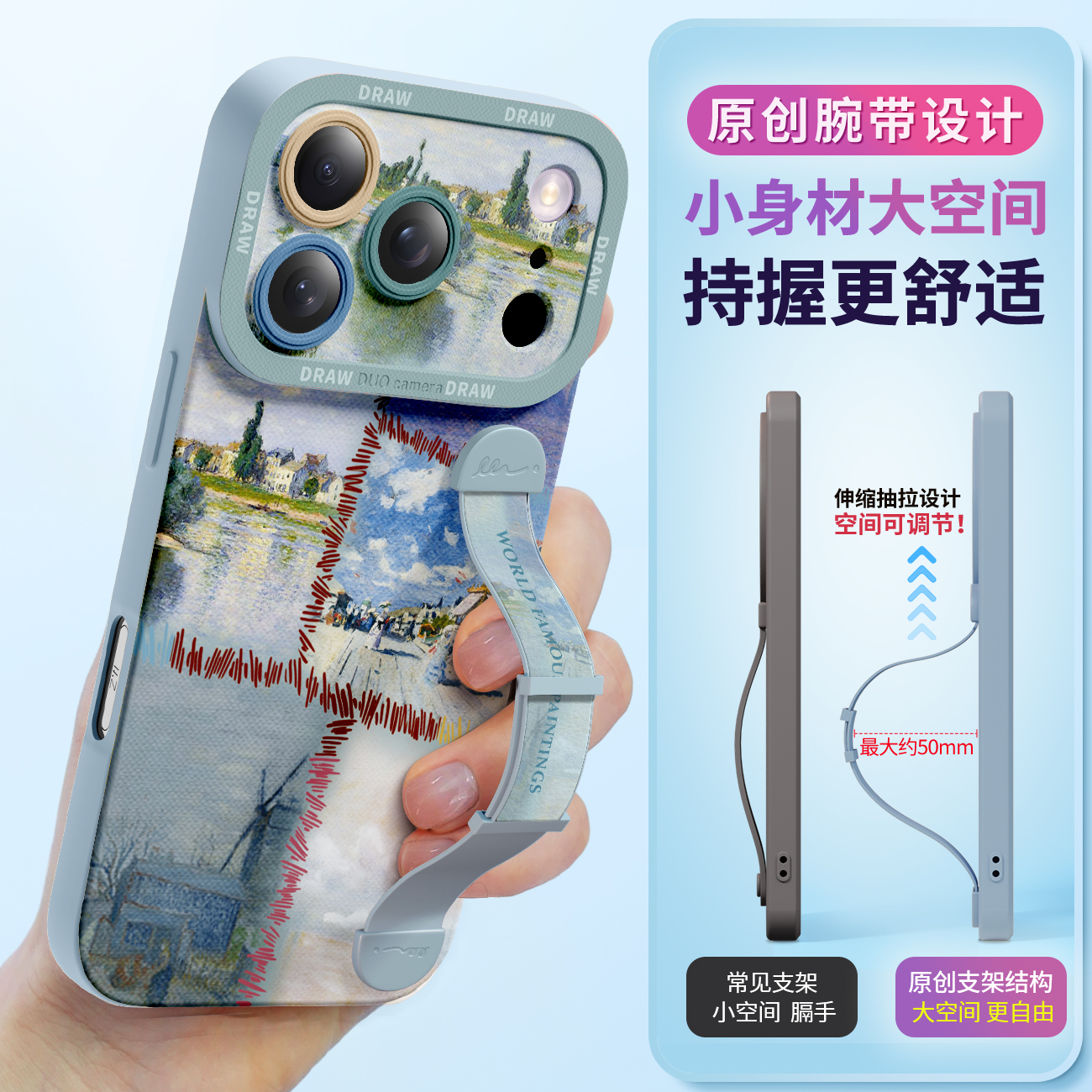 适用苹果17ProMax手机壳新款IPhone16腕带支架15Pro可调节14镜头全包13防摔12软硅胶11的保护套17Air拼接名画