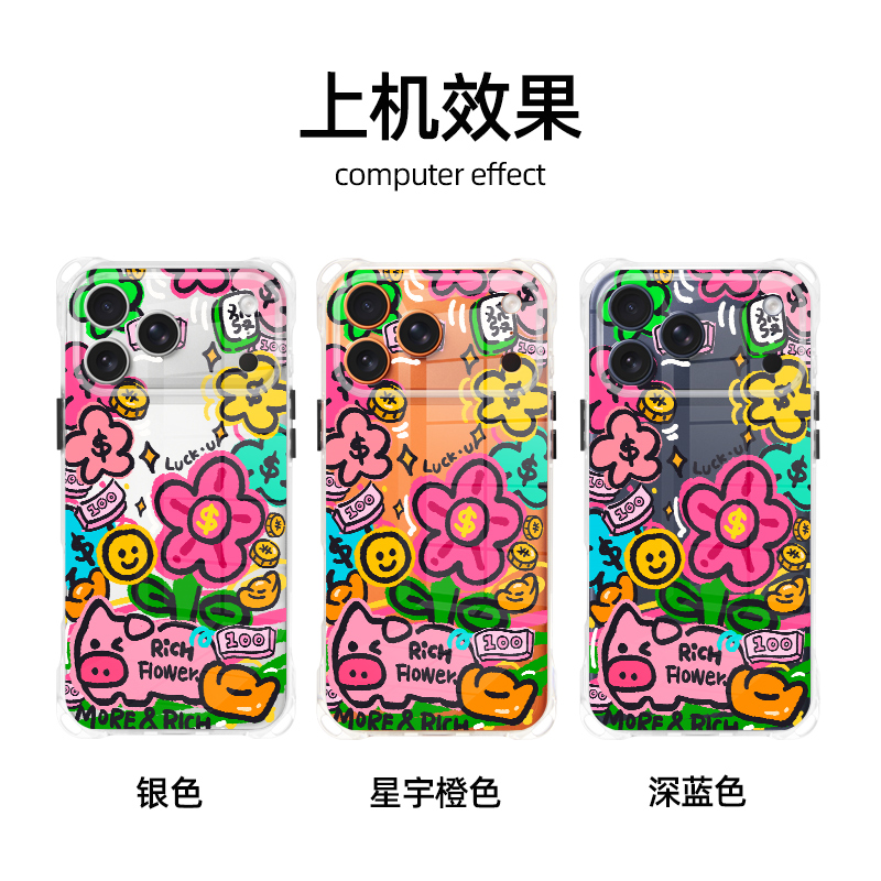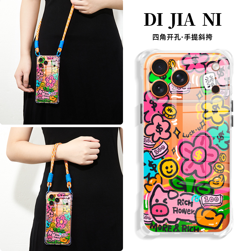 多彩有钱花适用苹果17pro手机壳挂绳透明iphone16promax手腕斜挎15可背手提14防摔往13新款Air高级pm挂脖12