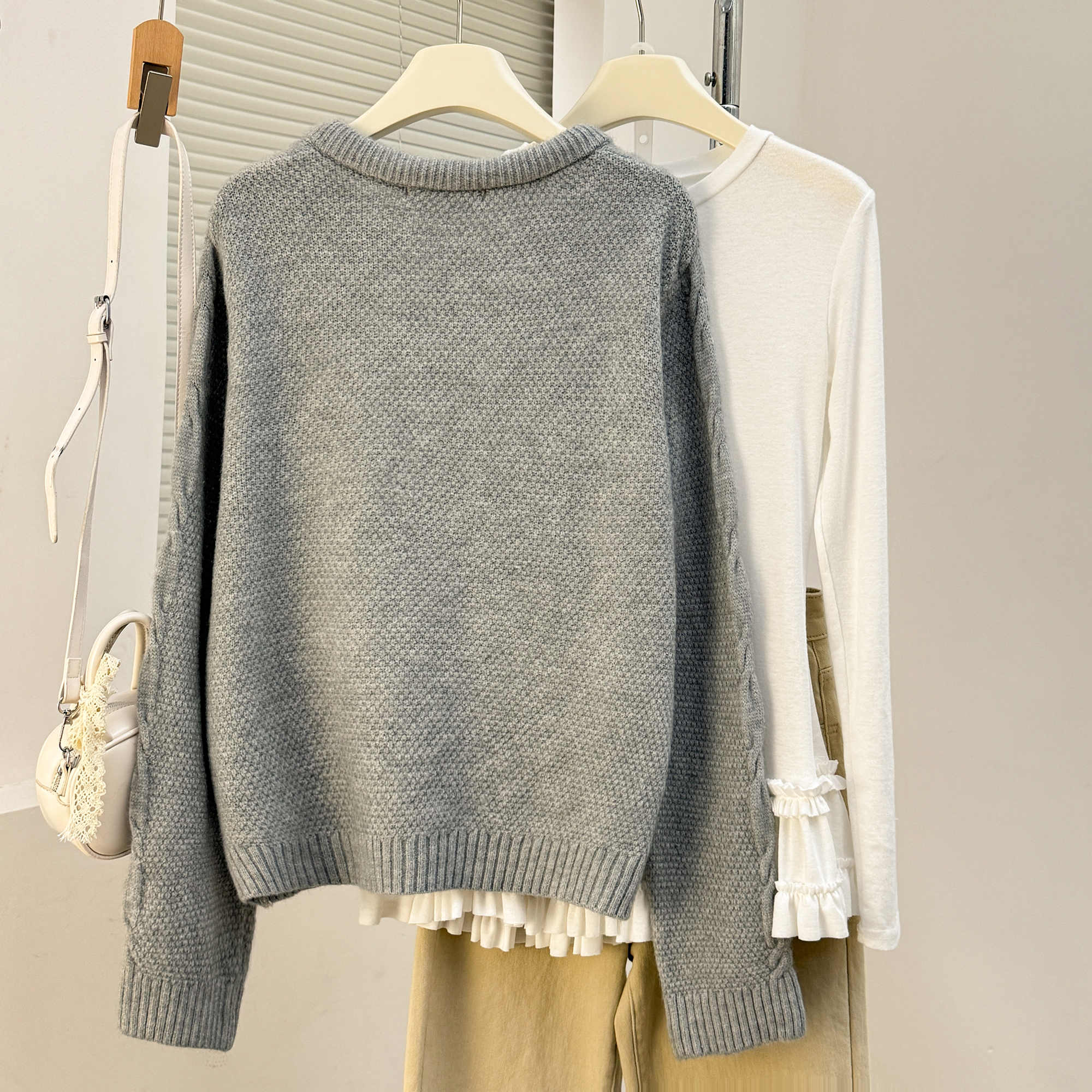 三福毛衣2025新款秋季韩系设计感蝴蝶结假两件开衫上衣女装508036