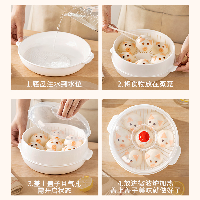 摩登主妇微波炉加热蒸笼蒸盒食品级双层热菜容器蒸米饭专用容器皿