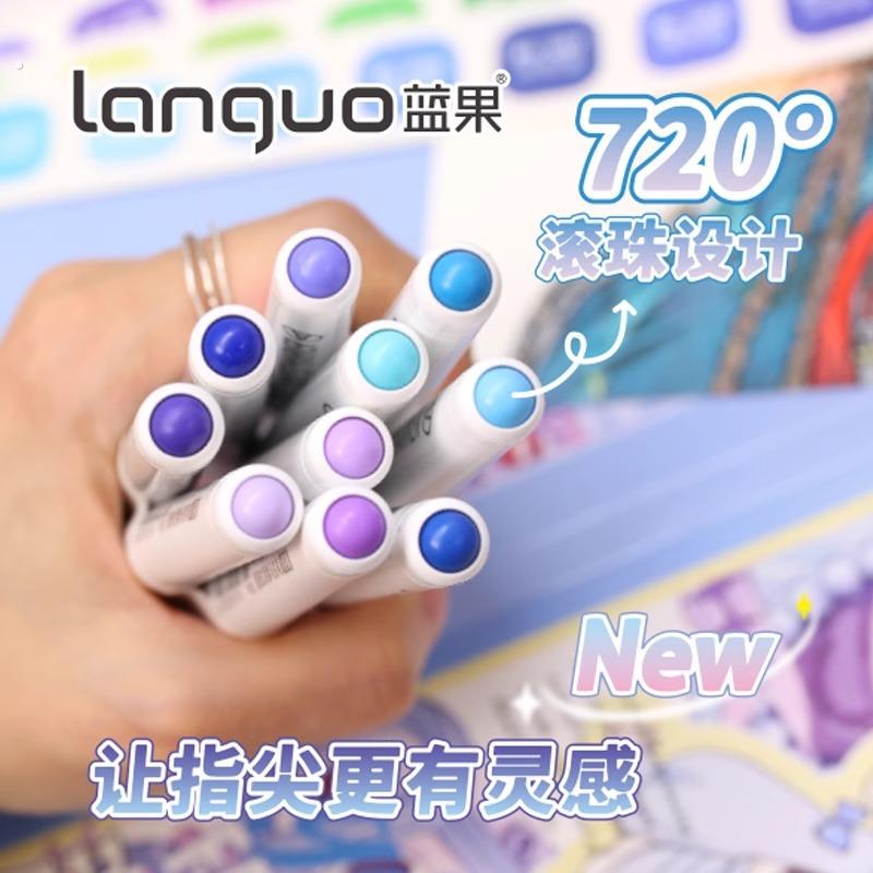 蓝果2025新款96色直液式丙烯马克笔礼盒套装48色软头小学生美术绘画专用240色不透色可叠色画智能控墨颜料