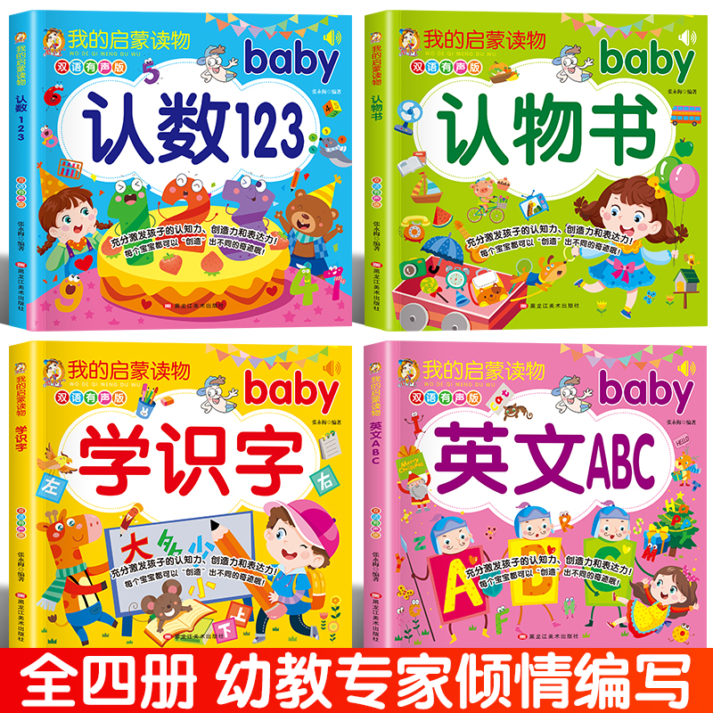 我的启蒙读物全4册双语有声版认数123认物书学识字英文ABC 0-3-6岁幼儿宝宝早教启蒙认知书幼小衔接学前班大班中班小班认字绘本