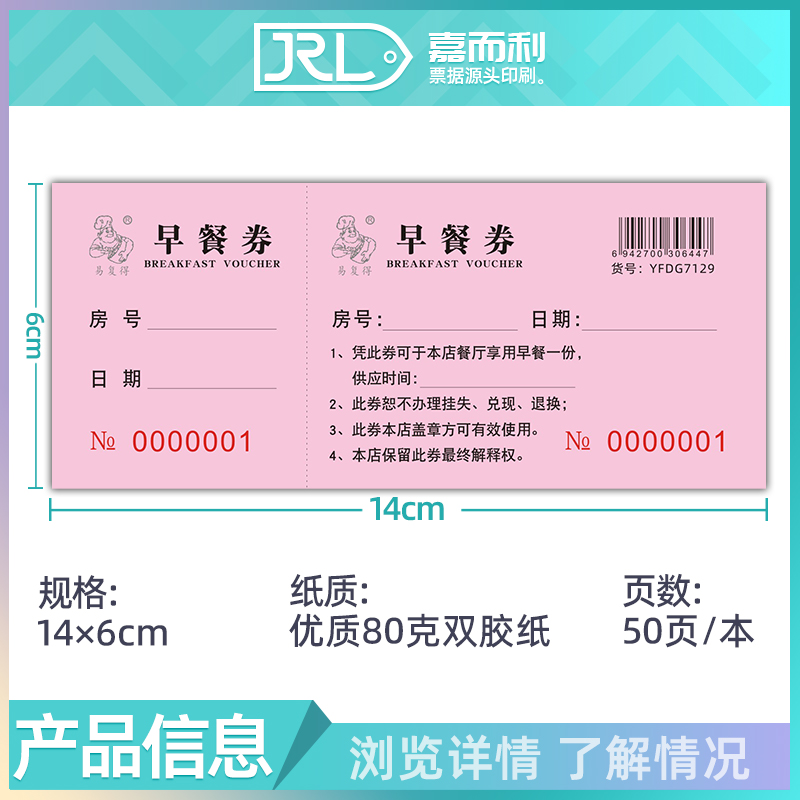 早餐券定制印刷抽奖券存酒卡停车票点心纸厨房采购表点菜单消费卡