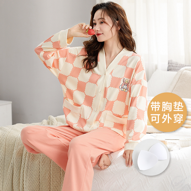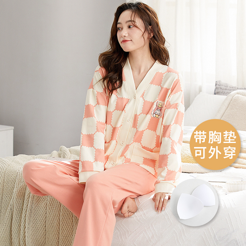 蕉内棉棉301Home家居服套装男纯棉睡衣女新款带杯带胸垫秋季长袖