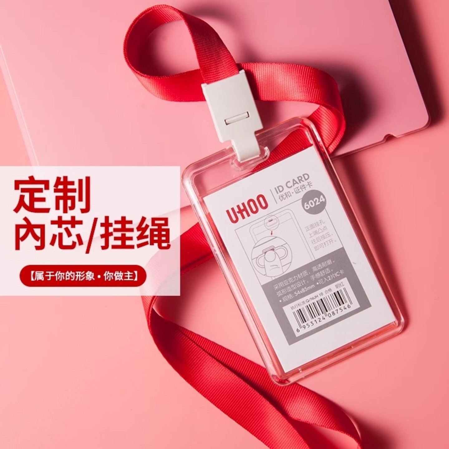 优和水晶亚克力卡套定制证件套透明工作牌厂牌定制带挂绳工牌定制胸牌员工卡套门禁上岗证工号牌学生证件套