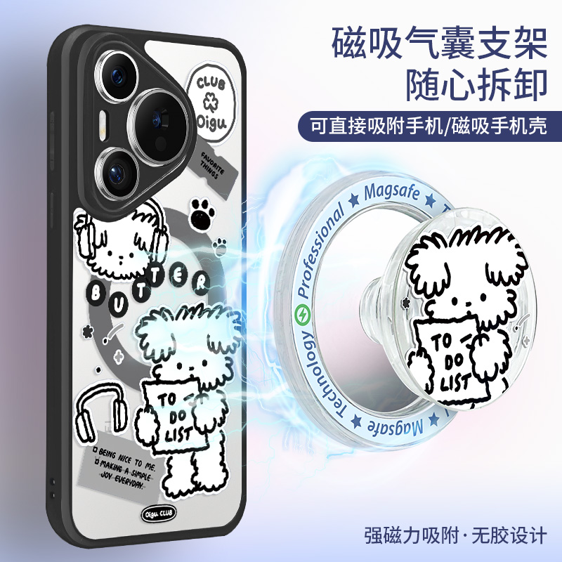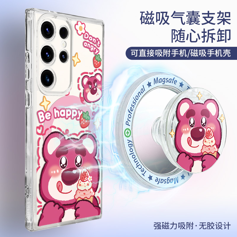 专利产品磁吸气囊支架苹果/华为手机magsafe磁吸伸缩折叠支架桌面固定透明指环扣卡通可爱猫狗啪嗒自拍拆卸女