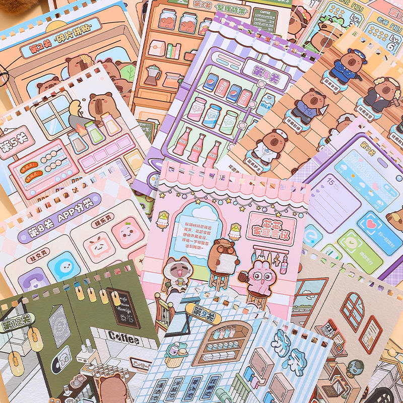 萌崽新款果冻贴纸安静书卡皮巴拉女孩免裁剪diy材料包儿童益智玩具
